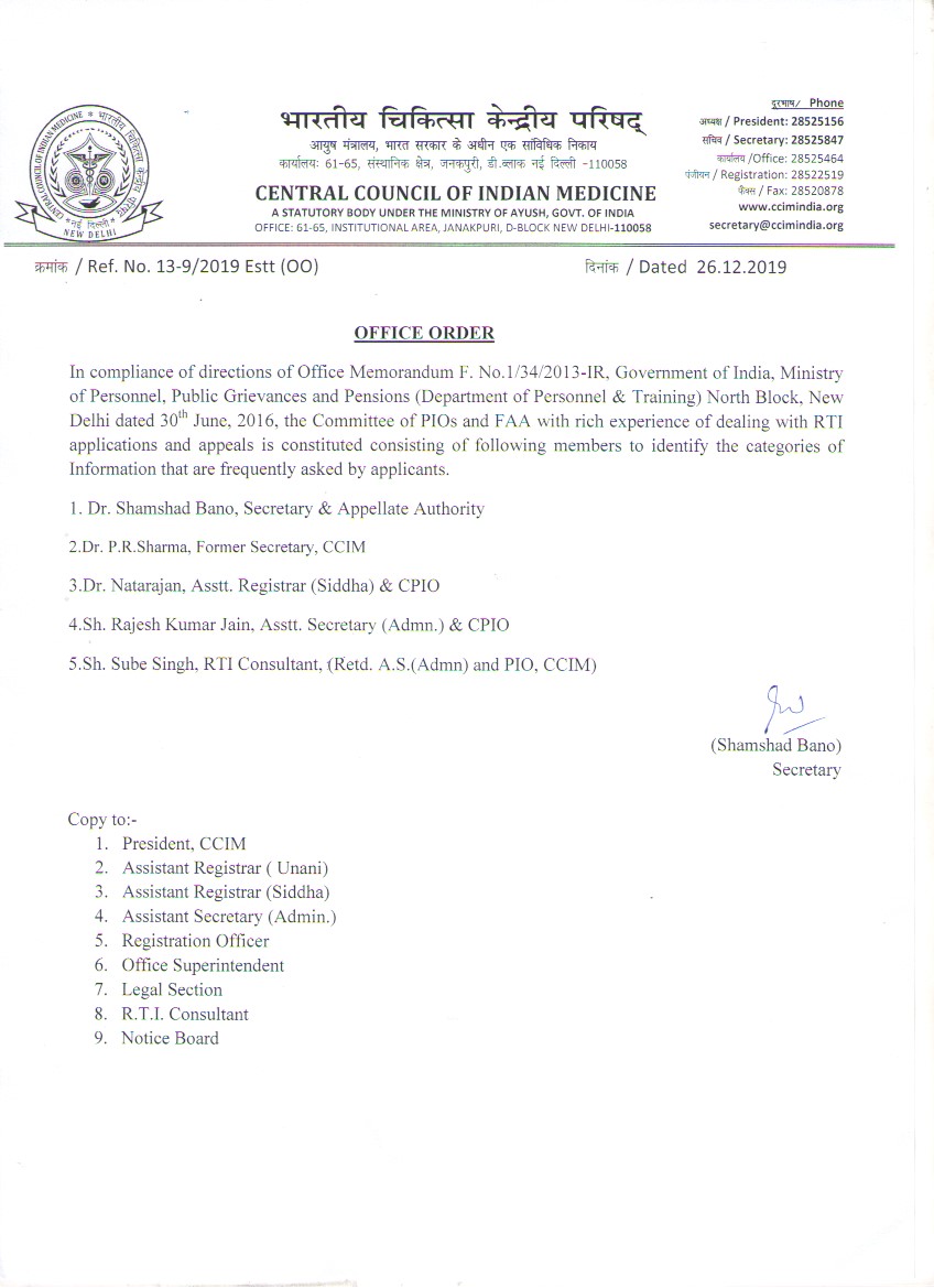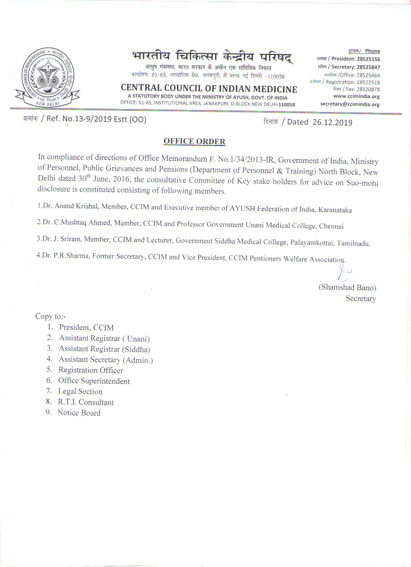 1. Central Council of Indian Medicine consisting the members of Ayurveda, Unani and Siddha elected or nominated under clause (a), (b), (c) of Section 3 (1) of Indian Medicine Central Council Act, 1970.